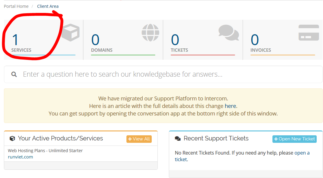 - Hai là vào cổng khách hàng bằng email để quản lý những gói hosting bạn đã mua.