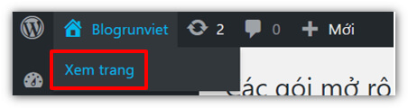 Quay trở lại với Sydney, để bắt đầu thiết kế trang chủ, bạn vào phần chỉnh sửa bằng cách nhập tên website vào Tab kế bên – hoặc từ trang quản trị wp-admin [icon name=”arrow-right” class=”” unprefixed_class=””] chọn xem trang: