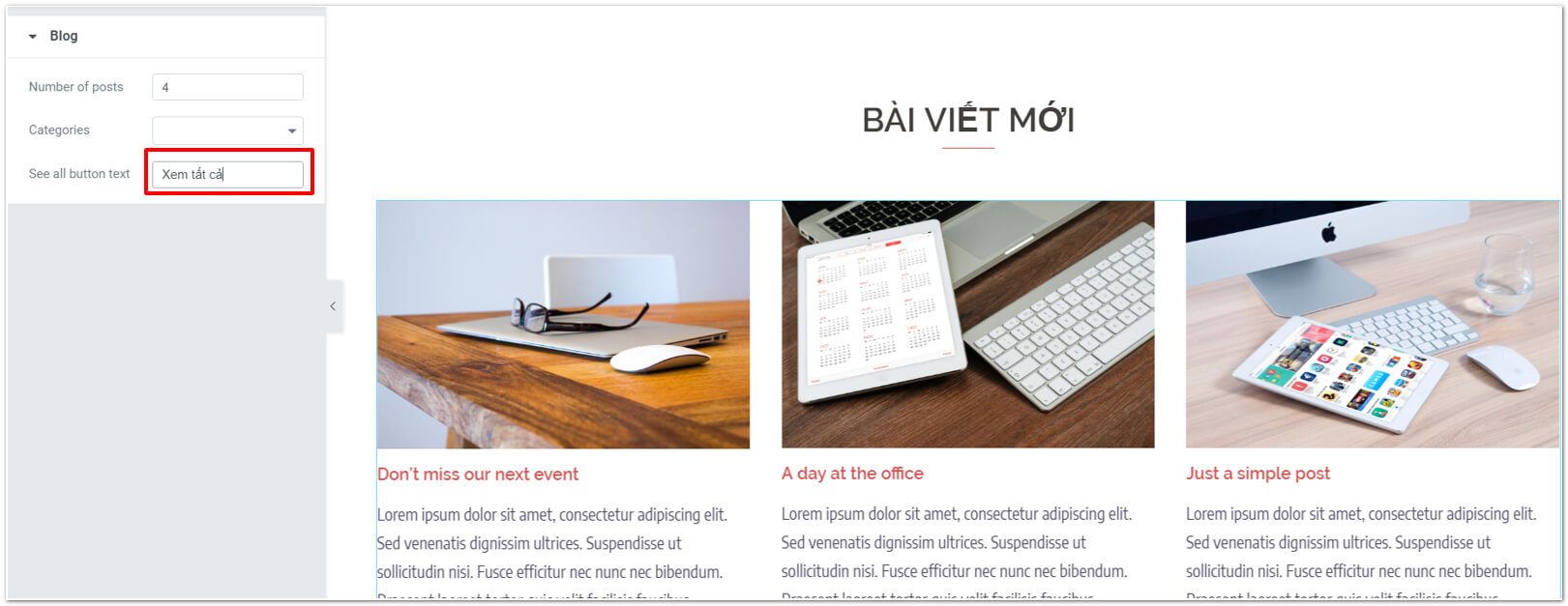 Trong đây có 1 nút bấm là See Some more Services. Bạn sửa thành theo ý bạn. Ví dụ: “Xem thêm”