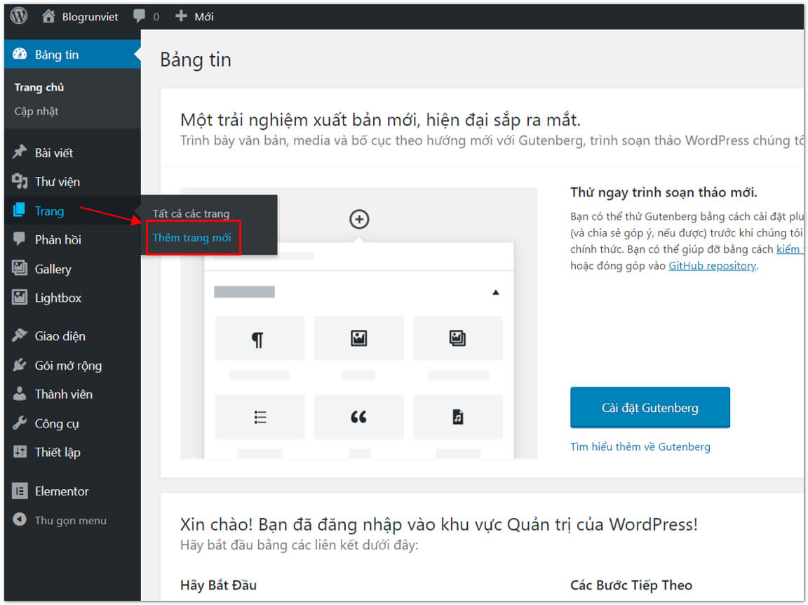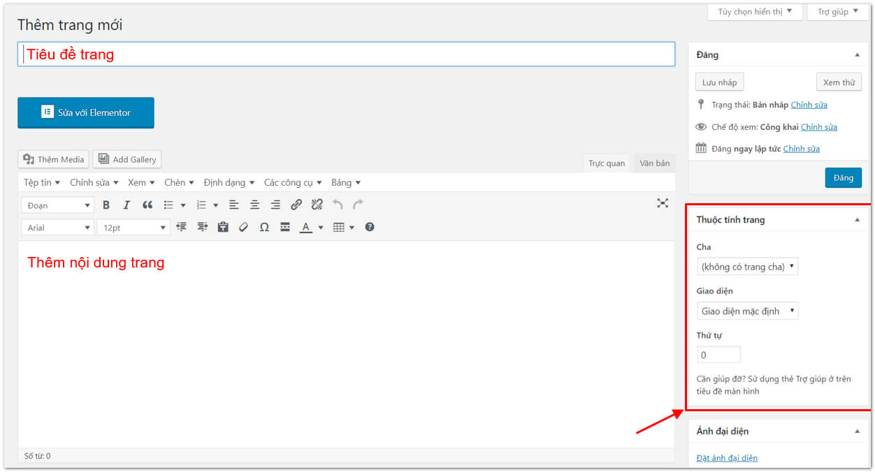 Giao diện thêm trang mới khá giống với tạo bài viết như đặt tên, nội dung