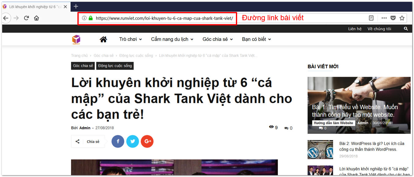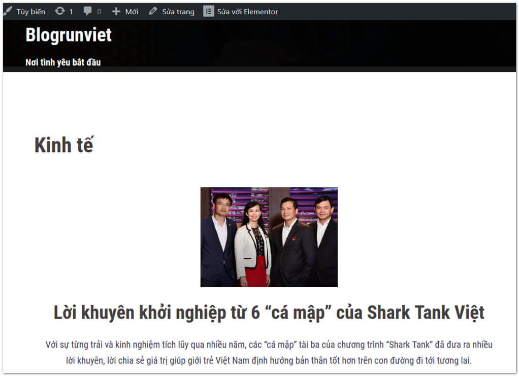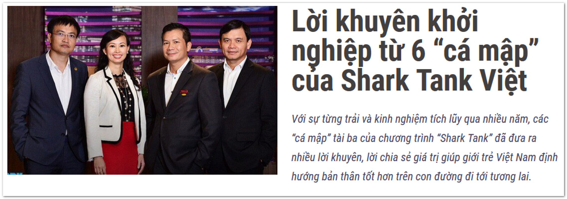 Ví dụ với bài viết: Lời khuyên khởi nghiệp từ 6 “cá mập” của Shark Tank Việt