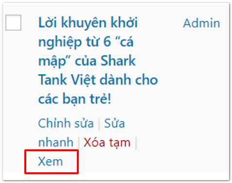 Để lấy đường link bài viết trong wordpress nhanh chóng, bạn có thể vào trang quản trị –> mục bài viết –> tất cả bài viết –> tìm bài viết của bạn –> ấn chọn xem rồi copy đường dẫn như trên là được