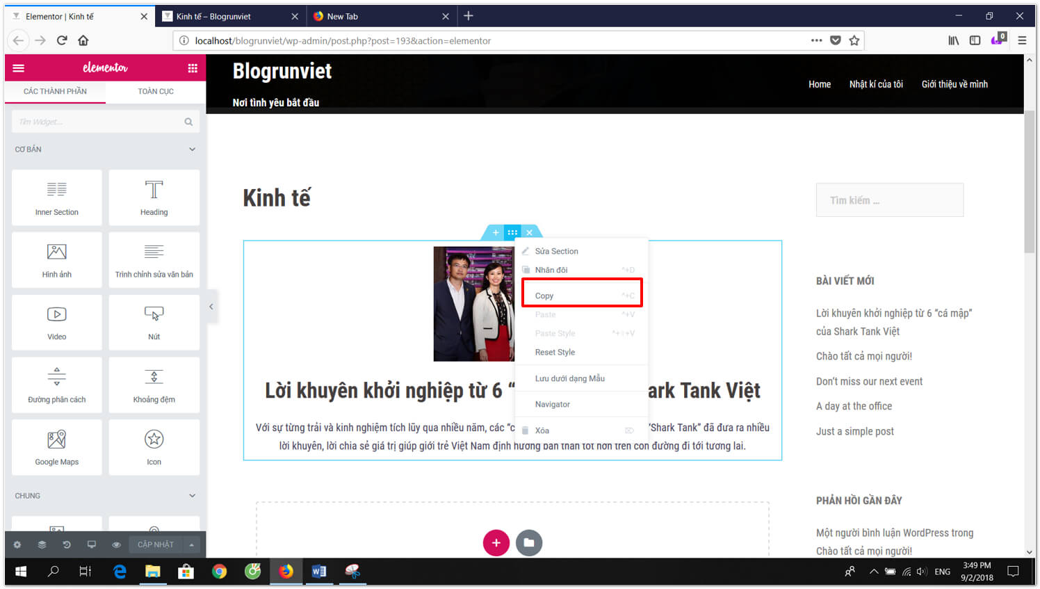 Để tạo được sự đồng nhất các bài viết như hình ảnh giống nhau, cấu trúc giống nhau. Bạn hãy copy ô bài viết đầu tiên sang ô mới, sau để chỉnh sửa lại trong hộp nội dung. Cách làm như sau: