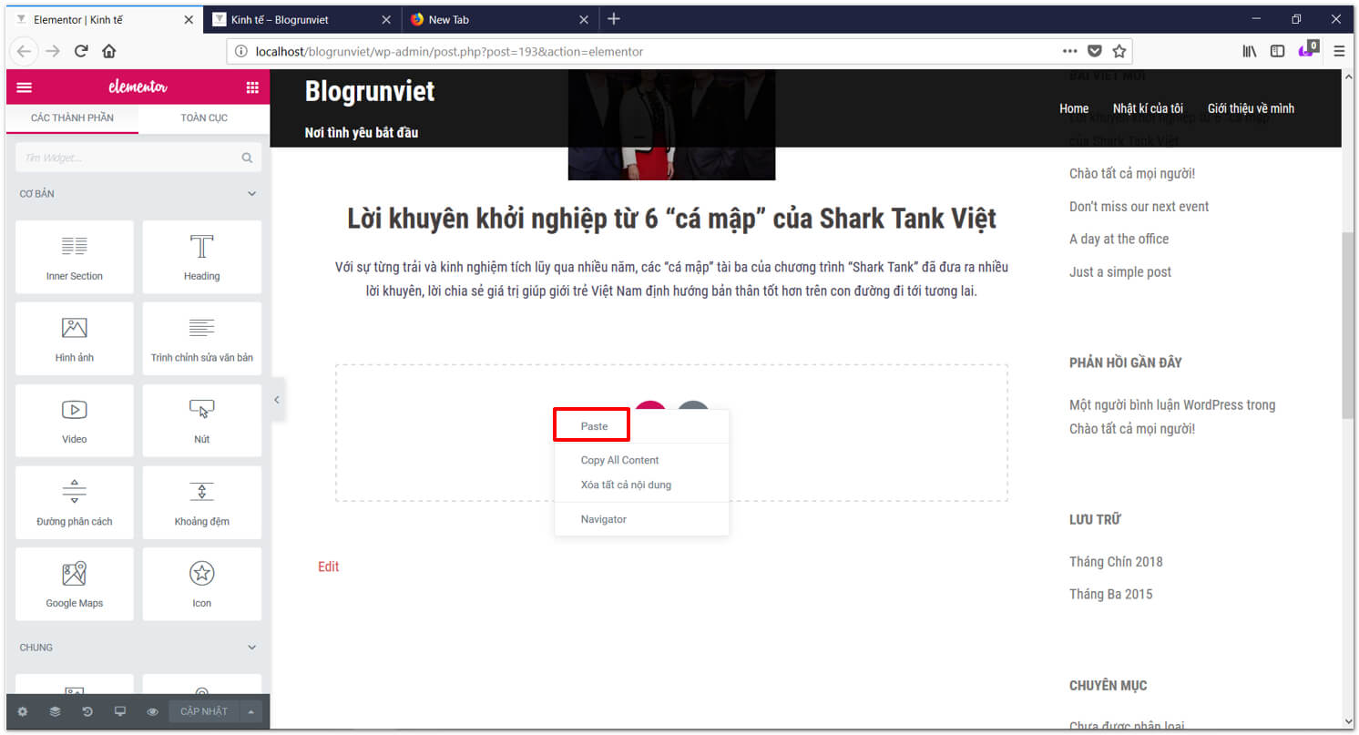 Sau đó chỉnh sửa lại bài viết vừa tạo: