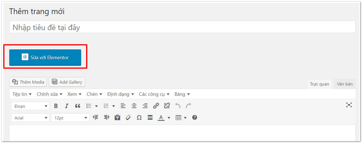 Ghi chú: bạn có thể chọn Sửa với Elementor trực tiêp như hình cho nhanh. Thay vì dùng cách vào ở trên.