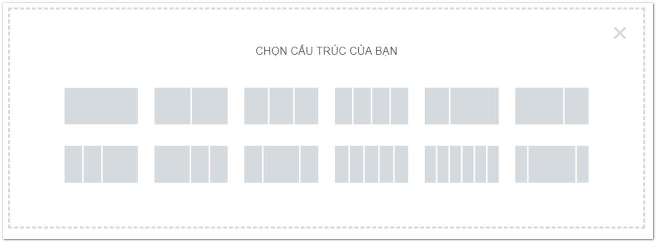 Có rất nhiều cấu trúc hay còn hiểu là chia thành từng cột. Bạn có thể chia thành 2 hay 3 cột nội dung tùy ý muốn. Bạn có thểm xem các Website hoặc Blog cùng chủ đề để xem cách họ thiết kế ô như thế nào. Ví dụ chọn 1: