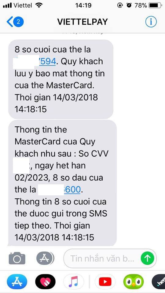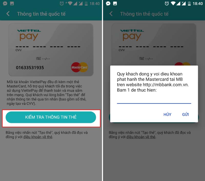 Bước 4: Ấn Kiểm tra thông tin thẻ, nếu số điện thoại này của bạn chưa đăng ký, hệ thống sẽ tự động đăng ký giúp bạn, sau khi hoàn thành bạn hãy đợi tin nhắn trả về số điện thoại bạn đăng ký sau đó bạn chỉ cần nhập đúng mật khẩu xác thực, tin nhắn chứa thông tin thẻ MasterCard sẽ được gửi đến điện thoại của bạn.