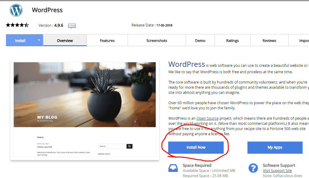 ➡ Tiếp theo là bạn kéo xuống, tìm biểu tượng wordpress và cài đặt