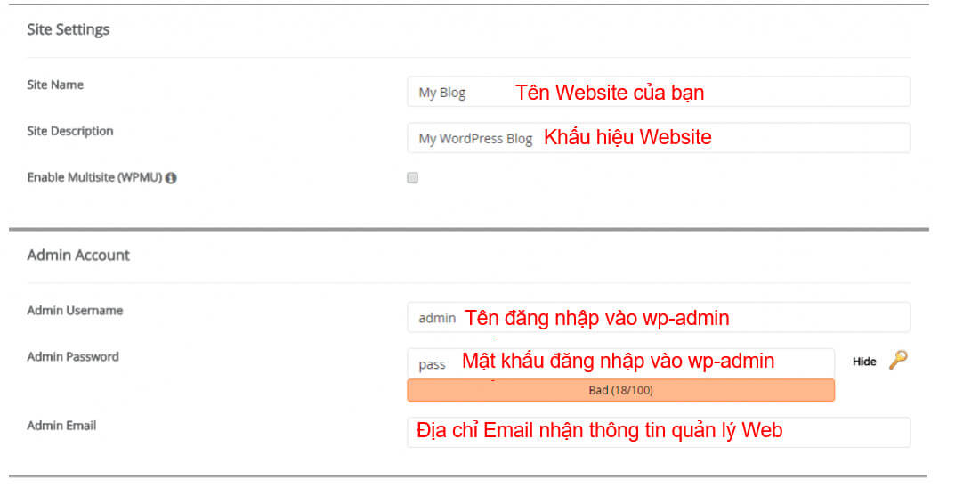 Sumit là xong. Bạn có thể tiến hành cài đặt WordPress hoặc trình CMS nào bạn thích như bình thường.