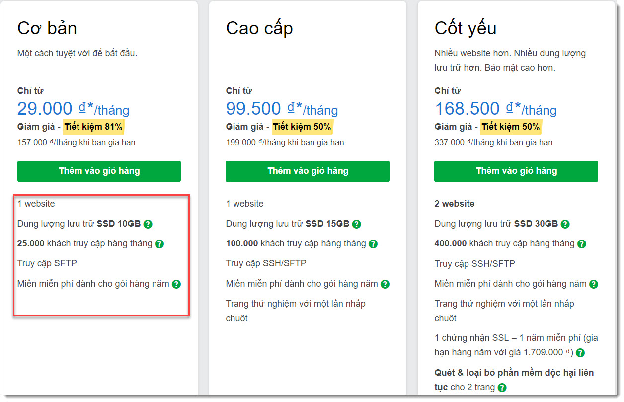 Đầu tiên, bấm vào đường link gói Hosting bạn muốn để nhận khuyến mãi ngay lập tức: